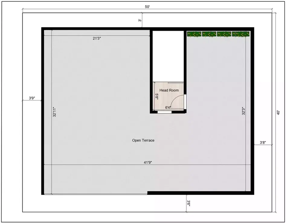 The terrace floor consists of open terrace measuring about 41' 9'' and 32' 3'' with a headroom measuring about 6' 4'' and 5' 8''