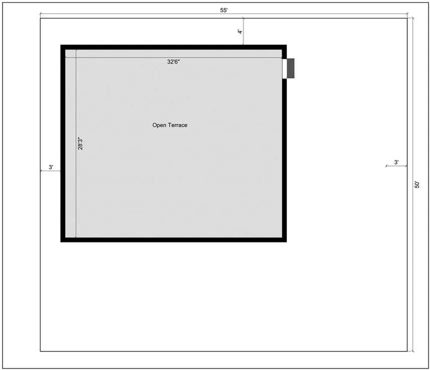 The terrace floor consists of large open wide terrace measuring about 32 feet 6 inches and 28 feet 3 inches.